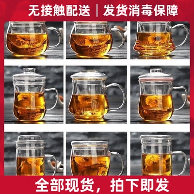 绿茶商务滤茶单个随手耐热玻璃带盖花茶杯。茶水分离茶具漏斗个。热门设计联盟服务商